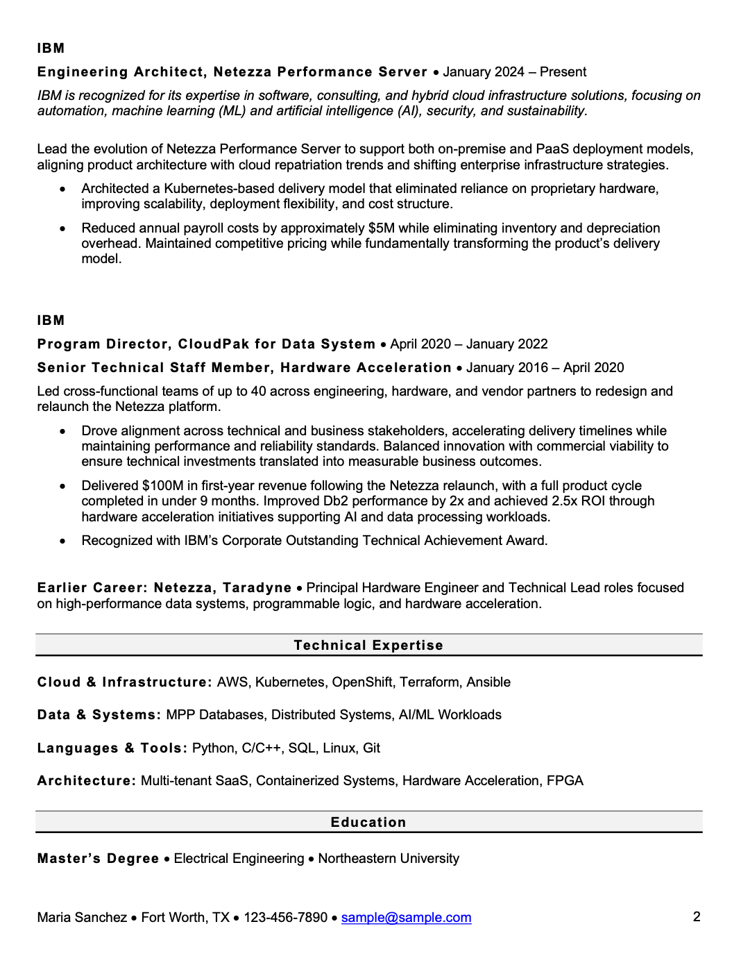 This resume works because it aligns with how senior technical leaders are actually evaluated.
