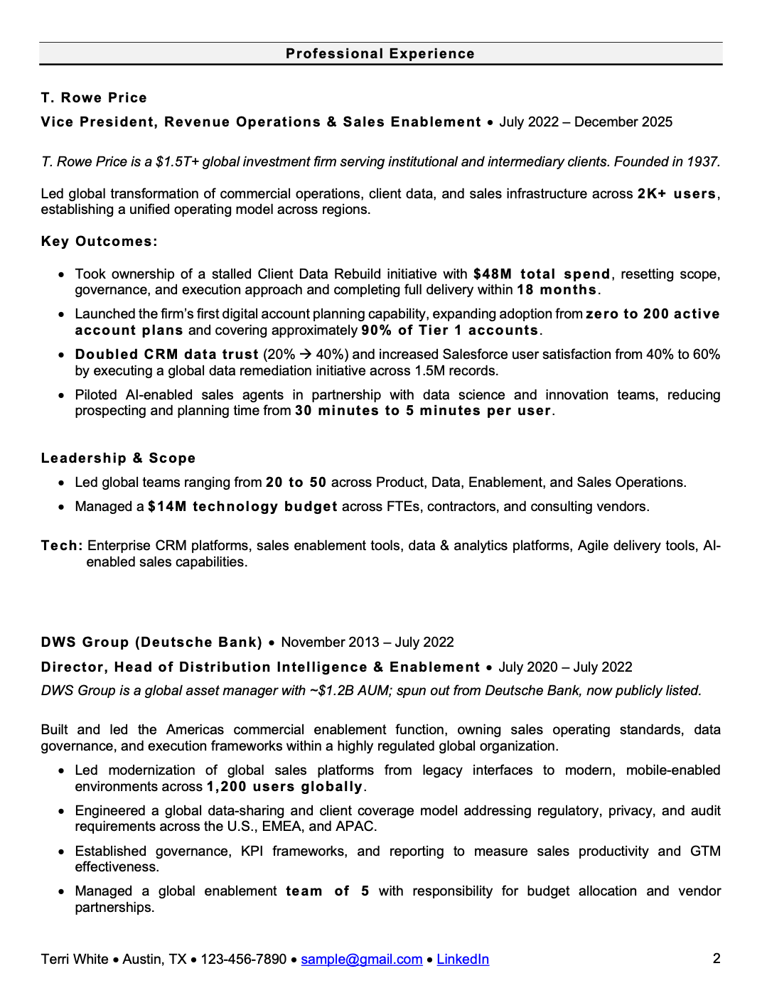 - Leading large-scale transformation across sales, data, and client operations